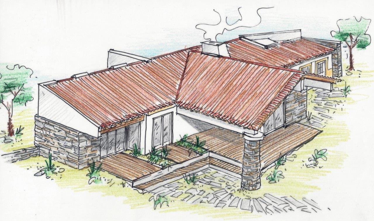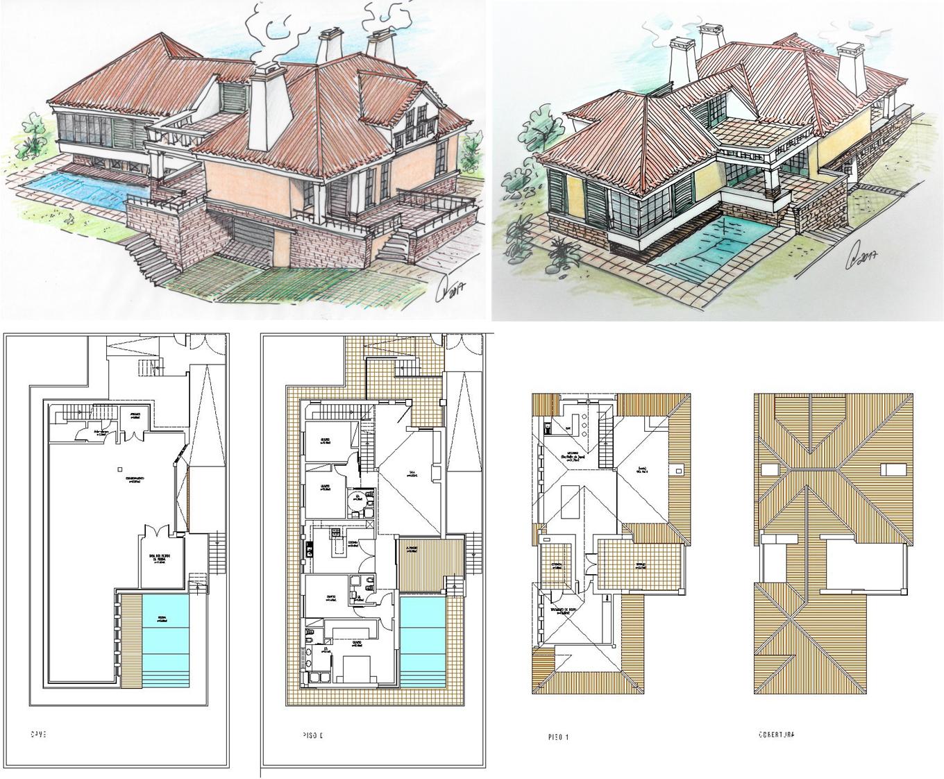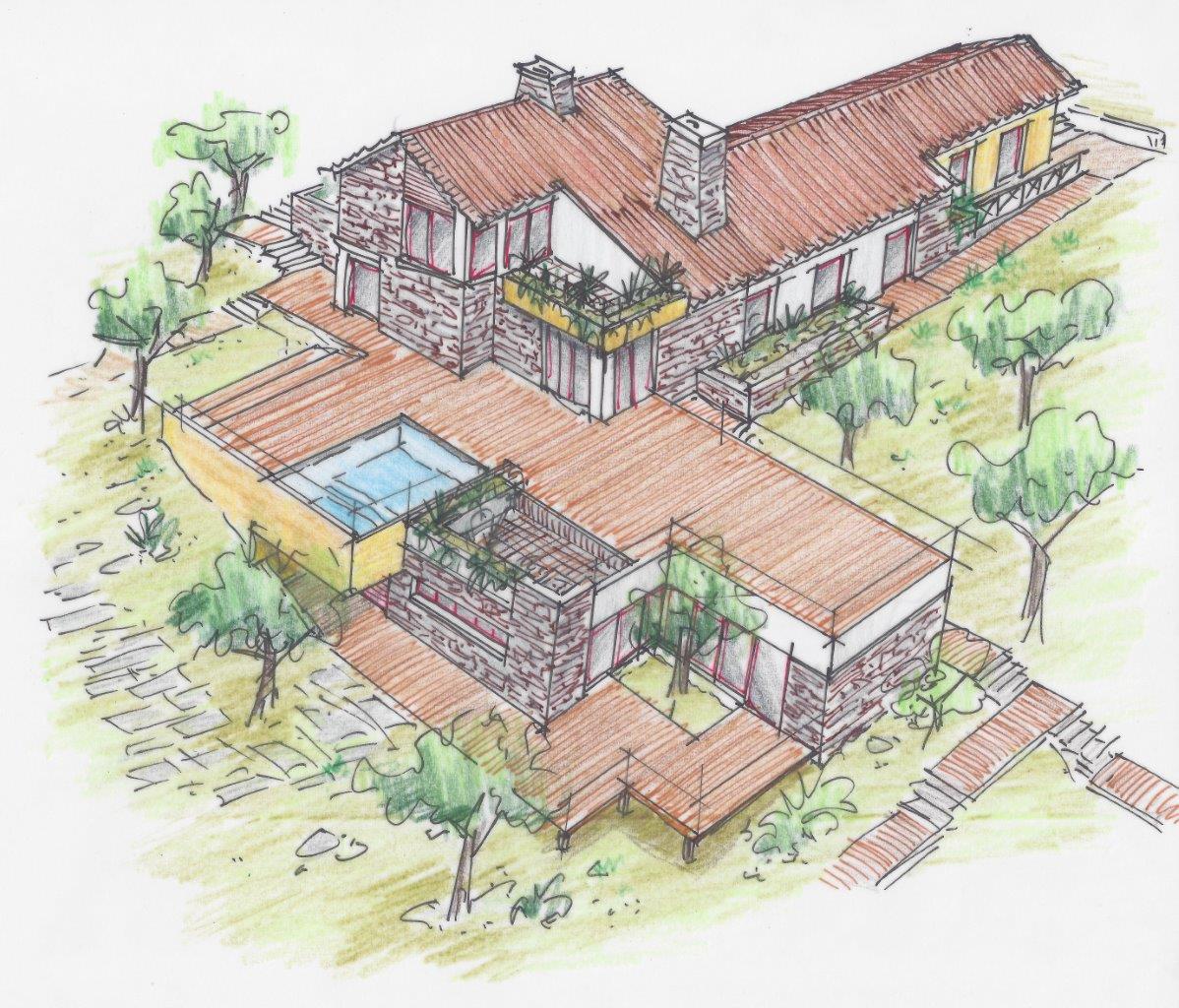 unifamiliar de tipologia T4, com um piso, alpendre panorâmico e piscina.